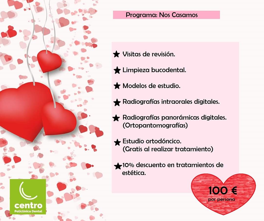 Queremos ayudaros a que ese día tan especial luzcáis la sonrisa más radiante. ¡Esta es vuestra oferta! Por sólo 100 por persona disfrutaréis durante todo un año de estos servicios: